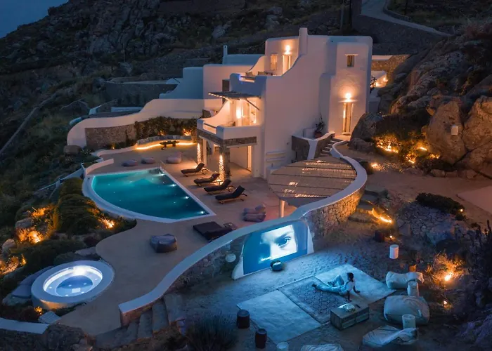 Ez az 5 szobás Maera alkalmas 10 fő elszállásolására egy 245 m^2-es területen, ahol vendégeinek tengerre néző kilátást biztosít. Ez a szállás Kaló Livádi városában helyezkedik el, 3,6 km-re az a Jackie O' Mykonos klub területétől.